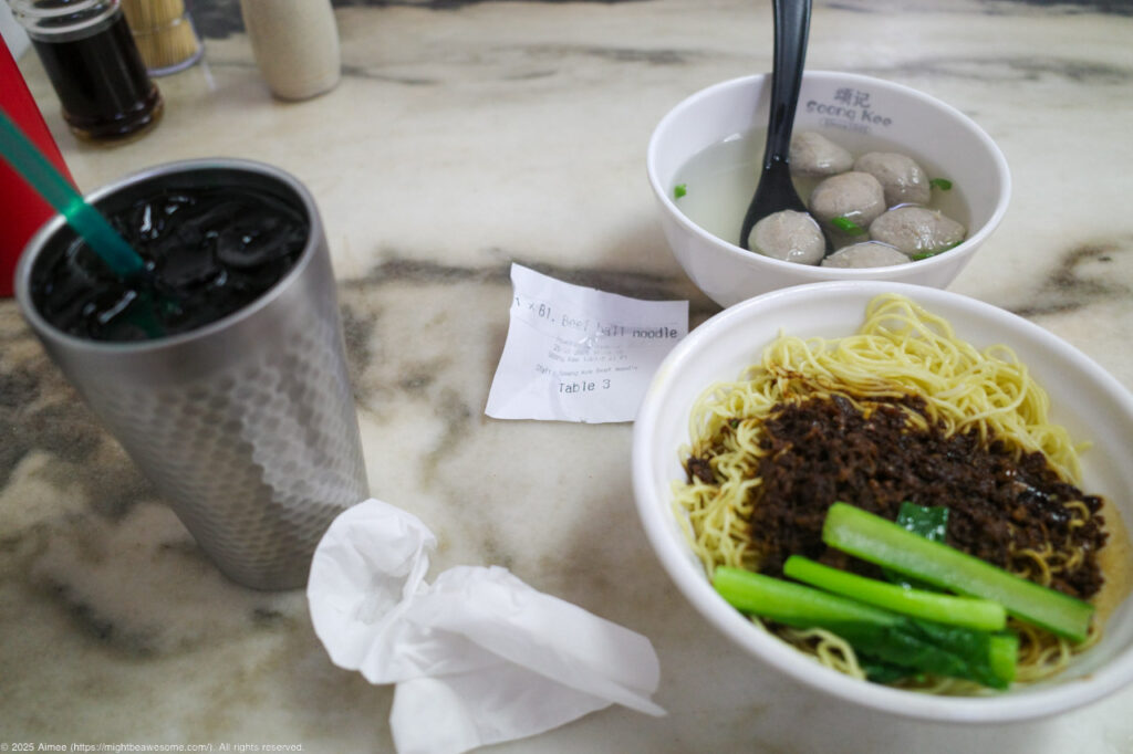 とりあえずおすすめの Beef Noodle と、飲み物は Herbal Tea っていうのを頼みました。